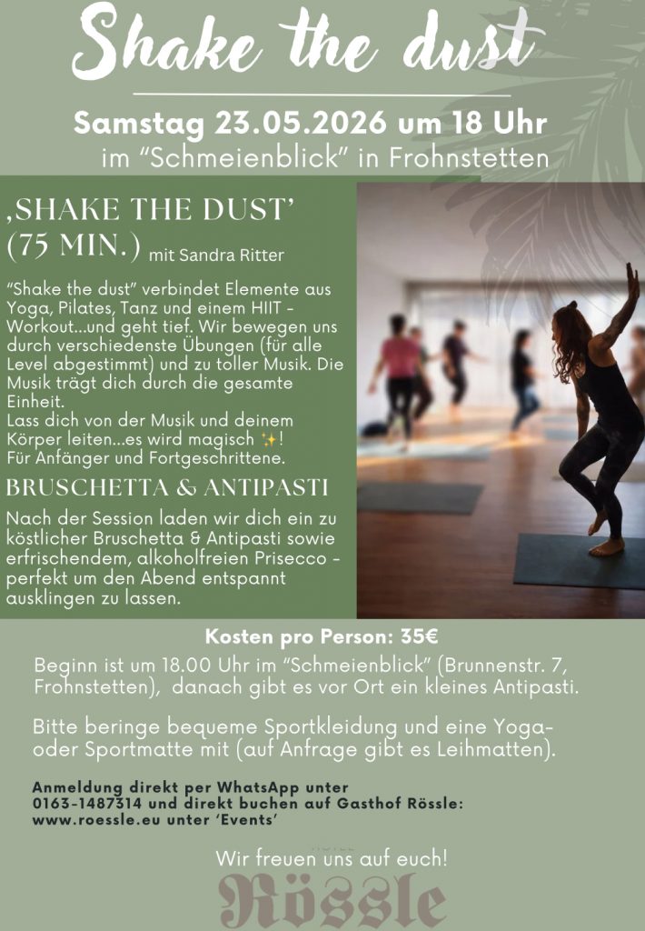 Mit Shake the Dust (Yoga, Pilates, Workout & freier Tanz) kommst du raus aus dem Kopf, rein in deinen Körper. Nach dem Motto: when you move, everything moves.